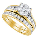 Description 14kt Yellow Gold Women's Round Diamond Flower Cluster Bridal Wedding Engagement Ring Band Set 1-1/2 Cttw Gemstone Details 1 & 1/2 Carats total weight Specifications 14kt Yellow Gold _Combined diamond weight of 1 & 1/2 carats total weight represents a range of 1.46 - 1.58 cts. t.w.