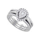 Description 14k White Gold Round Diamond Teardrop Cluster 3-Piece Bridal Wedding Engagement Ring Set 1/2 Cttw Gemstone Details 1/2 Carats total weight Specifications 14kt White Gold Combined diamond weight of 1/2 carats total weight represents a range of 0.46 - 0.58 cts. t.w.