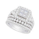 Description 14k White Gold Women's Princess Diamond Halo Bridal Wedding Engagement Ring Band Set 3-1/3 Cttw Gemstone Details 3 & 1/3 Carats total weight Specifications 14kt White Gold _Combined diamond weight of 3 & 1/3 carats total weight represents a range of 3.30 - 3.36 cts. t.w.