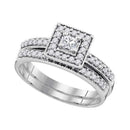 10kt White Gold Women's Princess Diamond Square Halo Bridal Wedding Engagement Ring Band Set 1/2 Cttw - FREE Shipping (US/CAN)