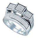 Sterling Silver Women's Round Diamond Triple Cluster Bridal Wedding Ring Band Set 1-2 Cttw - FREE Shipping (US/CAN)