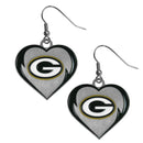 These bold heart earrings have 1 1/8 inch heart charms on hypoallergenic fishhook posts. The charms feature a fully cast Green Bay Packers logo with expertly enameled detail and a beautiful enameled swirl finish. A perfect addition to any fan's jewelry collection.