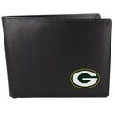 Sports fans do not have to sacrifice style with this classic bi-fold wallet that sports a Green Bay Packers emblem. This men's fashion accessory has a leather grain look and expert craftmanship for a quality wallet at a great price. The wallet features inner credit card slots, windowed ID slot and a large billfold pocket. The front of the wallet features a printed team logo.Officially licensed NFL product Licensee: Siskiyou Buckle. Classy leather like texture. Credit card slots, windowed ID slot and large billfold pocket. Fashionable and affordable men's accessory. Printed Green Bay Packers logo