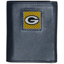 Our officially licensed fine grain leather wallet features numerous card slots, windowed ID slots, removable picture slots and large billfold pockets. This quality wallet has an enameled Green Bay Packers emblem on the front of the wallet making it a stylish way to show off your team pride. Officially licensed NFL product Licensee: Siskiyou Buckle. Genuine fine grain leather wallet. Ample credit card slots. Windowed ID slot. Metal Green Bay Packers emblem with enameled team colors