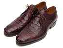 Paul Parkman (FREE Shipping) Men's Brown & Bordeaux Crocodile Embossed Calfskin Derby Shoes (ID#1438BRD)