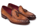 Paul Parkman (FREE Shipping) Camel Brown Genuine Ostrich Tassel Loafers (ID#OST834CML)