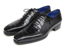 Paul Parkman (FREE Shipping) Men's Black Genuine Crocodile & Calfskin Oxford Shoes (ID#048-BLK)