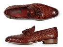 Paul Parkman (FREE Shipping) Men's Brown Crocodile Embossed Calfskin Tassel Loafers (ID#0823-BRW)