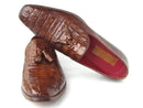 Paul Parkman (FREE Shipping) Men's Brown Crocodile Embossed Calfskin Tassel Loafers (ID#PP2281-BRW)