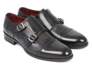 Handcrafted double monkstraps for men. Gray & Black hand-painted calfskin leather upper with a cap-toe. Bordeaux colored leather sole with bordeaux inner sole & lining.