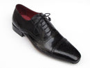 Side handsewn captoe oxford style men's handmade shoes. Black hand painted leather upper with leather sole and bordeaux leather lining.