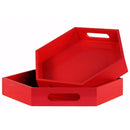 This six sides tray looks elegant and provides a spacious area to put things in. It is coated with red finish which makes it subtle at the same time. It features two cutout handles which provides it a good grip while carrying it. This hexagonal wooden tray is appealing and comes in a set of two different sizes.