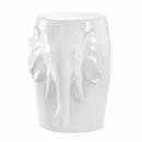 Beauty and function, this decorative ceramic stool has it all! Gleaming white ceramic features an artistic elephant bust. It works indoors and outdoors, and can be used as a set, an accent table, a footstool and beyond!
