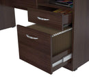 Get yourself a piece that has both gorgeous appearance and superb functionality with this desk. This desk is superbly crafted from solid composite wood laminated on all sides in double faced durable melamine, which is stain, heat and scratch resistant. It's certainly both sturdy and durable. Furthermore, it has an open storage shelf, an accessory drawer with a chrome metal handle, and a file drawer with the same handle and with full extension slides. As for measurements, they are 29.5' for height, 55.12' for width, and 29.5' for depth, and it weighs 65.5 pounds. This desk can be a great addition to your home and will improve its ambiance immensely. If you want a functional, gorgeous, and durable desk, this is the one for you.