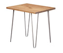 Clean, contemporary design meets rustic industrial style in this charismatic end table. Tastefully designed for a reclaimed aesthetic, this table is crafted of Maple hardwood with long-lasting Non-Toxic/Non-VOC natural finish, while a clean-lined hand forged Indiana steel hair pin legs in a gray finish offers a sophisticated contrast. This end table is great for displaying your cherished family photos or knick-knacks or holding a lamp to brighten your space.