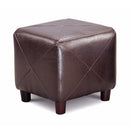 A contemporary, elegant and leather upholstered cubic ottoman. It is cube-shaped with a soft, padded cushion at the top for more comfort. The sturdy base consists of four small yet solid legs that provide stability. It perfectly matches modern interiors. From a foot rest to additional seating, from a coffee table arrangement to an accent - the rich look of this shiny Contemporary Leather Cube Ottoman will enhance your interior.