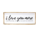 Fill any space with heartfelt style with the "I Love You More" Oversized Wall Art. Embellished with the affectionate sentiment 'I love you more than yesterday, but not as much as tomorrow' printed on a handcrafted board framed in natural wood, this wall art is an exquisite way of showing loved ones how you truly feel. Those powerful words run deep and with the size measuring 12" W x 1" D x 32" H, this framed art will surely make an impressive statement. The modern farmhouse style in a neutral palette will work with any room's color scheme. Includes an attached D-ring on the back for easy hanging.