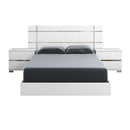 This standard king size Platform bed injects modern comfort into your bedroom space. This contemporary-style bed frame is defined by hard angles and subtle color, making it a sensational centerpiece to blend with any design scheme. Thick, durable wood is used to construct the frame, topped by a bright, high-gloss white acrylic lacquer finish with an anti-scratch functionality. The headboard's rectangular shape is slightly wider than the frame. Dimensions: W:101.58" D:85.04" H:48.43"