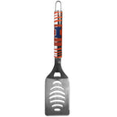 Our tailgater spatula really catches your eye with flashy chrome accents and vivid Illinois Fighting Illini digital graphics. The 420 grade stainless steel spatula is a tough, heavy-duty tool that will last through years of tailgating fun. The spatula features a bottle opener and sharp serrated edge. Officially licensed College product Licensee: Siskiyou Buckle. Spatula is 420 grade stainless steel. Convenient sharp, serrated edge. Handy bottle opener. Crisp chrome graphics with Illinois Fighting Illini logo and colors