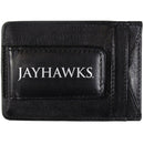 This super slim leather wallet lets you have all the benefits of a money clip while keeping the organization of a wallet. On one side of this front pocket wallet there is a strong, magnetic money clip to keep your cash easily accessible and theÊKansas Jayhawks team logo on the front. The versatile men's accessory is a perfect addition to your fan apparel. Officially licensed College product. Geniune leather men's fashion accessory. Slim style wallet with lots of storage. Magnetic money clip on one side and windowed ID slot on the other. Crisp, digital Kansas Jayhawks logo