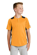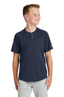 New Era Youth Diamond Era 2-Button Jersey An exceptional training or on-field piece, this moisture wicking, snag-resistant jersey combines Diamond Era fabric with a smooth interlock body. 5.9-ounce, polyester interlock double knit body 5.3-ounce, 100% polyester Diamond Era jacquard at neck, back yoke and side panels Heat transfer label for tag-free comfort Raglan sleeves Engraved New Era dyed-to-match buttons Embroidered New Era flag logo on left sleeve Shirttail hem Youth Sizes: XSXL Ladies Sizes: XS4XL Ladies Sizes: XS4XL