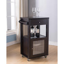 Add storage space and charm to your kitchen with this wheeled kitchen cart. The stylish red cocoa brown finish and wood top along with one drawer, make this cart an adorable addition to cottage, contemporary or beach decor schemes. This modern kitchen cart features ample storage for all your cooking needs with drawer, one door cabinet, shelves and towel rack. It can be used as wine cart also.