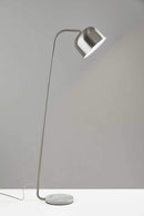 Showcasing a sleek, modern style, this Floor Lamp is a great way to add functional task lighting to your decor. A brushed steel pole and dome shaped shade are anchored securely by a natural white marble base. Adjust the shade to direct light where it is needed. A convenient touch switch is located on the shade. Bulb is not included.