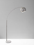 With a slim arched arm and a large dome-shaped metal shade, this Arc Lamp is a great way to achieve overhead lighting with style. A 150 Watt bulb can illuminate a large sitting area while an brushed steel finish and chunky white marble base complement the decor of any room. A rotary dimmer switch is located on the pole adjusting from bright light to mood lighting. This lamp has a clear cord and is smart outlet compatible. Bulb is not included.