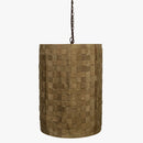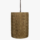 Retro Lamp - 14" X 14" X 19" Olive Yellow Iron Leather Pendant Lamp