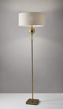 Brighten any living area with this Floor Lamp. With a mix of antique brass and clear glass materials and an open and airy silhouette, this timeless style will complement a variety of decor. When lit, a 150 Watt 3-Way bulb highlights the texture in a beautiful off-white fabric shade. The 3-way rotary socket switch will only work with a 3-way light bulb, otherwise this lamp will function with simple on/off switch at its highest setting. This lamp has a clear cord and is smart outlet compatible. Bulb is not included.