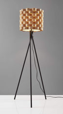 Looking for unique lighting? This Floor Lamp is the perfect selection. Pieces of natural finished PVC wood veneer are carefully woven through an oatmeal linen fabric shade to create an artistic interpretation of modern lighting. When lit, a beautiful wood grain reveals itself. Put one next to the sofa for ambient living room lighting. A matte black tripod matches back to the sleek, black fabric covered cord.