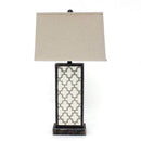 Functionality combined with decorative appeal, this table lamp with rock floral base is designed to be a great addition to every home and office. Featuring at its top a contemporary bronze table lamp and at the base a rock floral pattern, all making this masterpiece the best table top accent for your study or office decor. - Contemporary collection - Rock base - Beige linen shade
