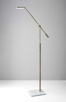 Comprised of antique brass and white marble, this LED Floor Lamp reveals a striking mix of industrial and elegant designs. 500 lumens of strong, energy efficient LED task lighting can be dimmed using a touch dimmer switch and also directed where it is needed with an adjustable shade and arm. This full spectrum LED light emulates natural daylight to ease the strain on your eyes. This lamp has a black cord and is not smart outlet compatible. The LED lights are integrated into the lamp and are not replaceable, but last 50,000 hours.