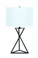 This fabulous table lamp will look amazing on side of your sofa in living room and sitting couch in your bedroom area. This contemporary design lamp is not only exemplifies functionality but will also enhance your space with its sleek openwork triangular design metal base. Its modern look further features a drum shaped white fabric shade so that it can grace in any way wherever needed with maximum functionality. It also incorporates the rotary light switch which you can use to turn on and off with ease.