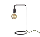 A mix of vintage and industrial styling, this Desk Lamp makes a statement wherever you place it. A thin metal tube creates the entire body of the lamp and flows continuously into a green fabric covered cord that pops perfectly against the matte black finish . An amber tinted vintage Edison bulb, which is included with the item, provides warm, decorative light. A simple on/off switch is located conveniently on the cord.