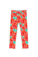 Oh So Sassy Lucy Cute Orange Floral Printed Leggings - Girls
