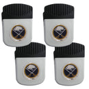 Use this attractive clip magnet to hold memos, photos or appointment cards on the fridge or take it down keep use it to clip bags shut. The magnet features a Buffalo Sabres dome emblem.Officially licensed NHL product Licensee: Siskiyou Buckle. Pack of 4, 2 inch wide clip magnet, with bottle opener on the back. Strong magnet to hold memos or notes. Use a clip to keep chips or other bag items fresh. Clip features a Buffalo Sabres dome logo on the front of the magnet