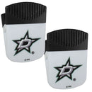Use this attractive clip magnet to hold memos, photos or appointment cards on the fridge or take it down keep use it to clip bags shut. The magnet features a printed Dallas Stars logo.Officially licensed NHL product Licensee: Siskiyou Buckle. Pack of 2, 2 inch wide clip magnet, with bottle opener on the back. Strong magnet to hold memos or notes. Use a clip to keep chips or other bag items fresh. The Dallas Stars logo is printed on the front of the magnet