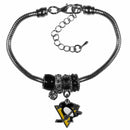 We have combined the wildly popular Euro style beads with your favorite team to create our Pittsburgh Penguins bead bracelet. The 7.5 inch snake chain with 2 inch extender features 4 Euro beads with enameled team colors and rhinestone accents with a high polish, nickel free charm and rhinestone charm. Perfect way to show off your team pride. Officially licensed NHL product Licensee: Siskiyou Buckle. Combine your love of the game with the wildly popular Euro beads. 4 Euro beads with a high polish team charm and rhinestone. 7 inch snake chain bracelet with 2 inch extender. Perfect gift for a Pittsburgh Penguins fan