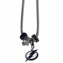 We have combined the wildly popular Euro style beads with your favorite team to create our Tampa Bay Lightning bead necklace. The 18 inch snake chain features 4 Euro beads with enameled team colors and rhinestone accents with a high polish, nickel free charm and rhinestone charm. Perfect way to show off your team pride. Officially licensed NHL product Licensee: Siskiyou Buckle. 18 inch snake chain. 4 team colored Euro style bead and rhinestone charm. Combine your love of the game with this wildly popular style. Tampa Bay Lightning charm with enameled team colors