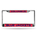 Blue Jackets Laser Chrome Frame Red Background With Navy Letters