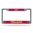 Let everyone know who you're rooting for this quality chrome license plate frame! Officially licensed and is easy to mount around just about any license plate. This officially licensed chrome frame measures 12 x 6 with Plastic team inserts at top and bottom of frame. Frame is zinc metal. Decorated in team colors and bling!