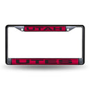 Showcase your team spirit when you're on the road with this officially licensed laser chrome license plate frame from Rico! The 6-inch x 12-inch black metal frame is decorated in the team colors and designed with laser-cut acrylic team inserts at the top and bottom. Product is made of 50% metal and 50% plastic.