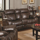Contemporary Plush Bonded Leather Motion Loveseat With Console, Dark Brown