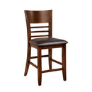 A Clean And Crisp Silhouette Brings Focus To The Solid Construction Of This Counter Height Chair. It Is Finely Crafted From Solid Wood, Veneers And Composites And Bathed In A Brown Cherry Finish. The Ladder Back Design Gives This Chair Its Distinct Appeal. The Brown Padded Leatherette Seat Ensures Enduring Comfort.