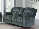 Customize your modest space with this modern designed glider recliner loveseat to add the retro style to the home. This contemporary addition will provide your family and friends a comfortable place to spend their quality time after long tiring days. Featuring smart details, this recliner is offering an inspired design that is tuned by cushion armrest, back design and in-built center console. Sturdily made frame over which charcoal black textured plush microfiber fabric is draped, this reclining loveseat will be a perfect inclusion to your living room.