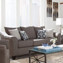 Grace meets comfort with this transitional style sofa finished in a light gray color. Lounge around in this fabric upholstered sofa accompanied with heavily cushioned back and seat for the utmost comfort. With flared armrests on each side and wooden legs for sturdy balance, this sofa makes for a timeless piece of furniture for your living space. It includes two contrasting accent pillows for added comfort.