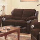 Transitional Wood/Corduroy/Leatherette Loveseat, Chocolate & Brown