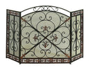 Turn your fireplace into the focal point of your home by bringing this three Panel Fireplace Screen, a simplest solution to protect your home from escaping sparks and embers. It has a bronze finish that perfectly fits most home. It features Fleur de Lis accents, fret work on metal mesh structure, pierced design frame with domed top and flat base. Made up of durable metal, it is sure to last long and in pristine condition. Its foldable functionality provides it a great edge and can be set aside when not in use.