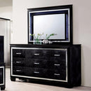 Glam up your bedroom with the well designed dresser. A bold black finish, complemented by faux crocodile embossed drawer fronts that will turn any space from drab to fab. Decorative silver trim and sleek crystal handles makes this dresser truly stand out. Nine spacious drawers give you enough and more space to neatly arrange your clothes and anything more you wish.